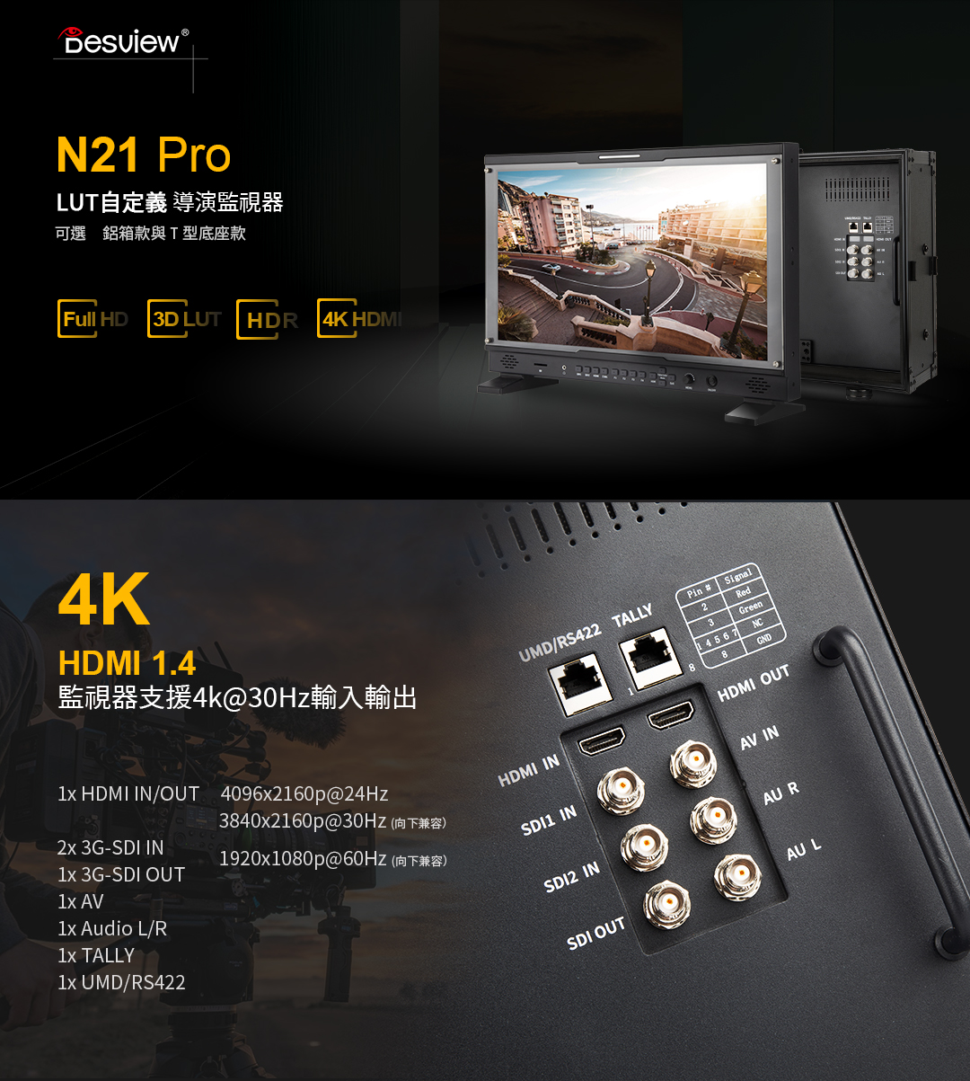 21.5吋 含鋁製外殼 解 支援透過 SD 卡自訂 3D LUT